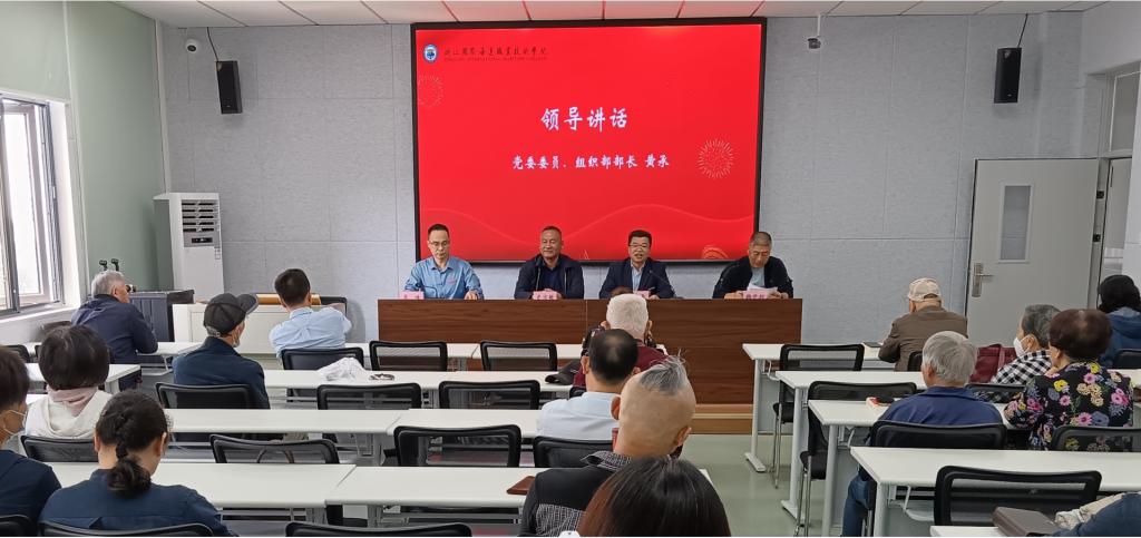 黄承代表学校党委致辞,他指出,老年学校的成立,是学校贯彻落实《中共中央 国务院关于加强新时代老龄工作的意见》等文件精神,自觉服务国家战略、助力全民终身学习的具体行动,是全校离退休老同志政治、精神、文化生活中的一件大喜事;是学校学习宣传贯彻党的二十大精神,扎实开展学习贯彻习近平新时代中国特色社会主义思想主题教育的一项重要举措;也是不断加强老年工作,丰富学校教育事业结构,发挥服务社会发展职能,推动学校发展成果共建共享的一项具体措施。并就如何办好人民满意的老年学校提出了三点期望:一是要坚持政治引领,主动担当作为;二是要立足学校实际,打造办学特色;三是要创新教学模式,总结经验做法。