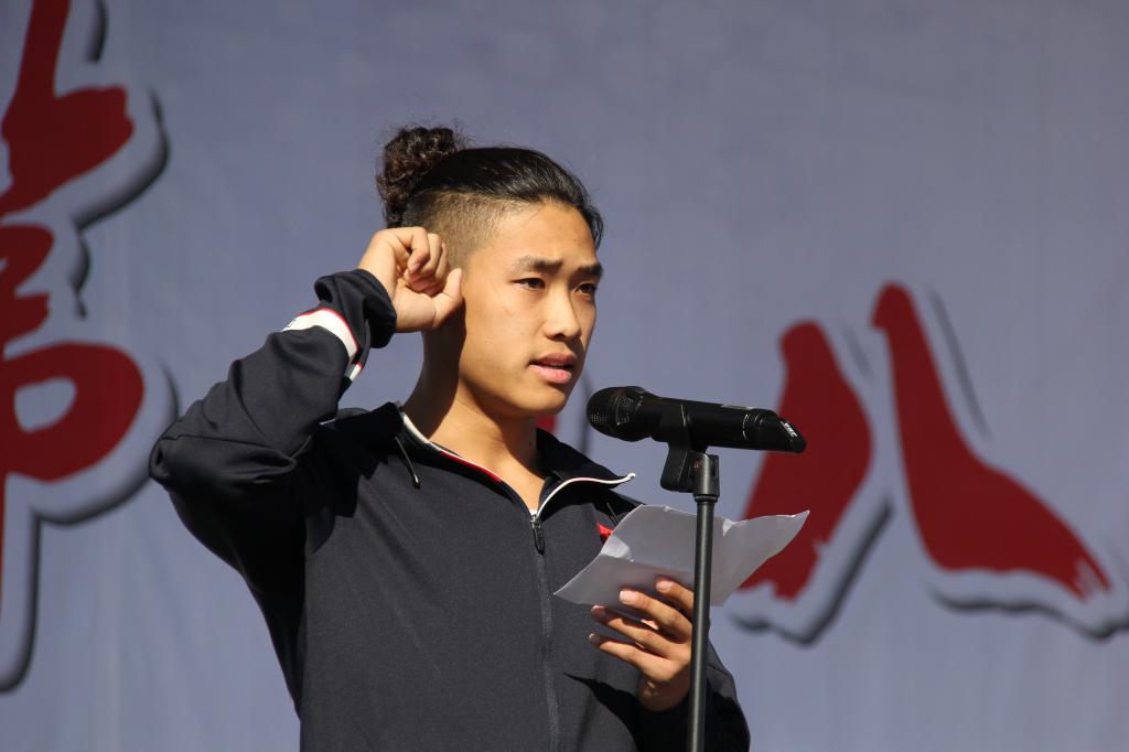 庄严的升国旗仪式后,运动员代表蔡缤磊同学和裁判员代表王亚鹏老师分别宣誓,承诺将严格遵守赛事活动的安排并以积极饱满的态度参加本届运动会,确保运动会的公平公正。