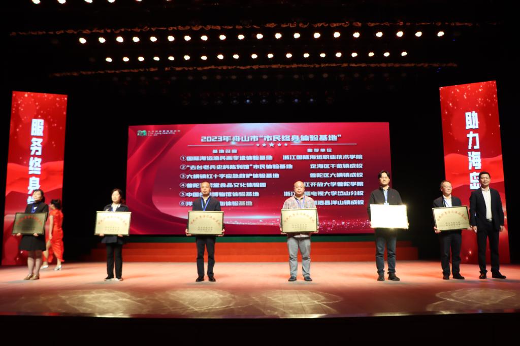 11月10日,2023年舟山市全民终身学习活动周开幕式在嵊泗县海洋文化中心举行。本次活动以“让学习成为生活的一种方式”为主题,聚焦展示我市近一年来全民终身学习成果,表彰一批学习先进典型。我校渔民画非遗体验基地喜获2023年舟山市“市民终身体验基地”称号,这也是继今年6月获评舟山市非物质文化遗产传承基地称号后,该基地获得的又一重要肯定。