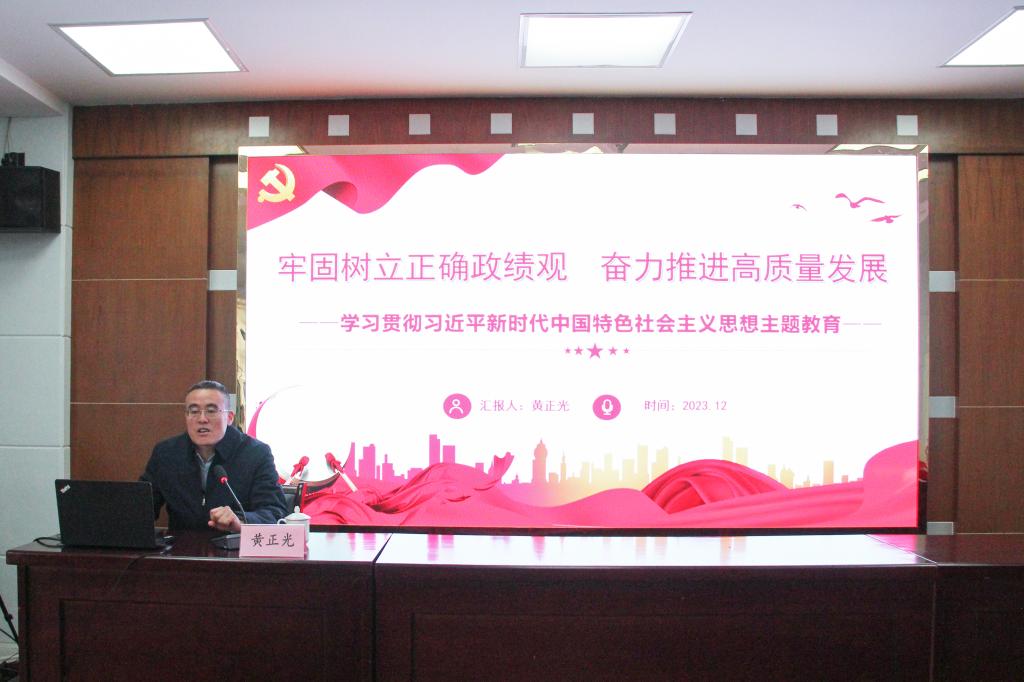 会议第一阶段,邀请了舟山市委党校副教授黄正光以《牢固树立正确政绩观 奋力推进高质量发展》为题,为校党委理论学习中心组成员及各党总支(直属党支部)书记作专题辅导。他结合习近平总书记关于树立和践行正确政绩观的重要论述,围绕“要始终坚持正确的政治方向”“要始终坚持以人民为中心”“要力戒形式主义和官僚主义”“要始终坚持担当实干”等四方面进行了深入浅出地讲解。