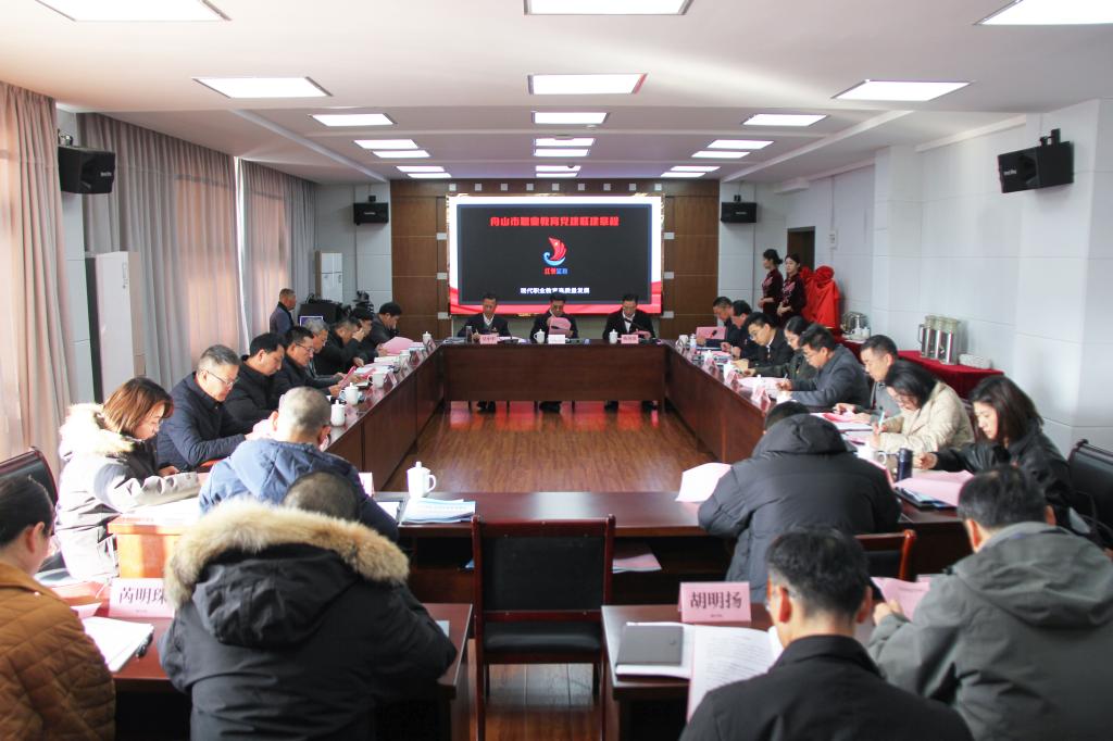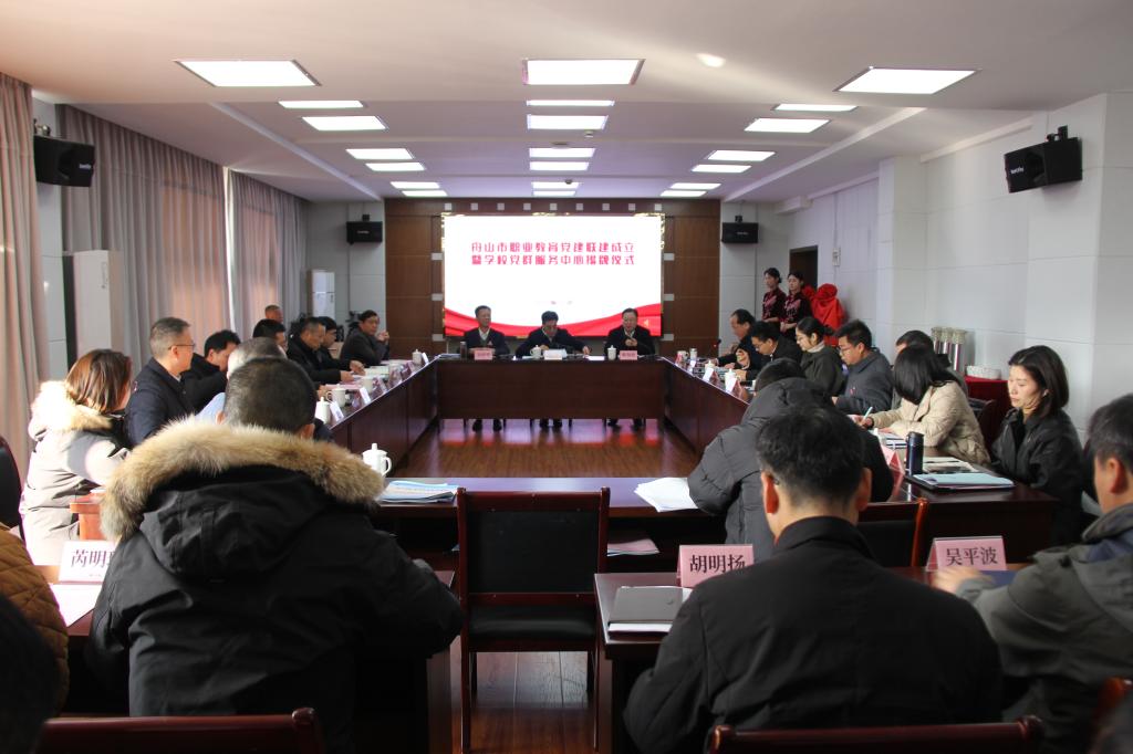 12月26日上午,舟山市职业教育党建联建成立暨学校党群服务中心揭牌仪式在行政楼401会议室举行。舟山市党建研究会会长、一级巡视员钱军,舟山市教育局党委书记、局长陈海波,学校党委副书记、校长吴中平,市教育局一级调研员杨永明,市党建研究会副会长胡国光,省委巡回督导组陈聪,市委主题办顾芸铭,舟山市属职业院校领导和相关部门负责人,我校各党务部门负责人和党总支(直属党支部)书记参加会议。会议由我校党委副书记孔志光主持。
