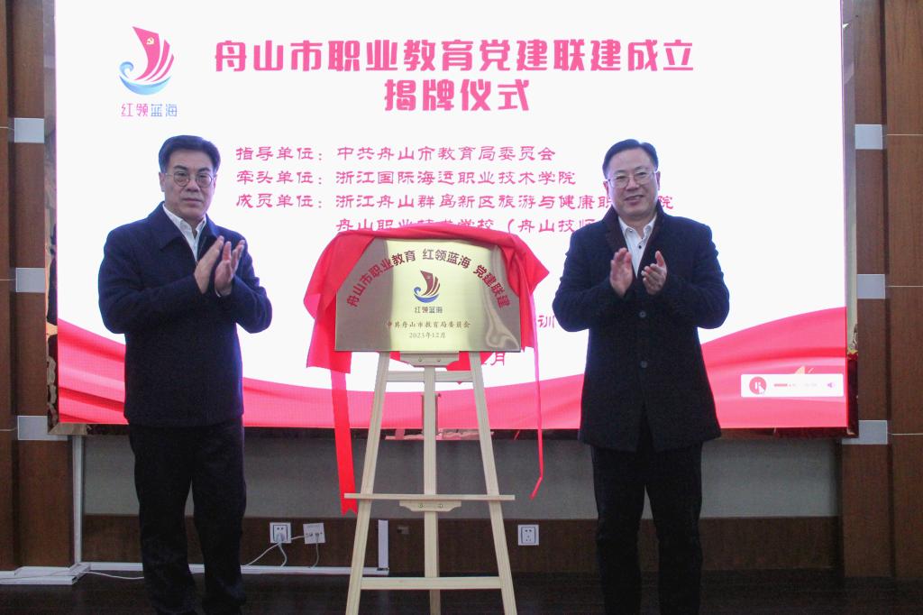 以红色领航,在蓝海驰骋。会议审议通过了舟山市职业教育“红领蓝海”党建联建章程。钱军和陈海波共同为舟山市职业教育党建联建揭牌。市职业教育党建联建是全市职业教育系统深化交流合作的一个创新平台,也是在学习贯彻习近平新时代中国特色社会主义思想主题教育期间推进基层党组织建设的务实举措。该平台由我校发起筹建,在市党建研究会和市教育局党委指导下开展工作。旨在发挥党建统领作用,把握职业教育和产业发展新趋势,创新党建载体、打造特色党建、建设专家智库、引领事业发展,凝聚舟山海洋职教合力,破解制约舟山职业教育发展的瓶颈,服务国家和省市重大战略实施。