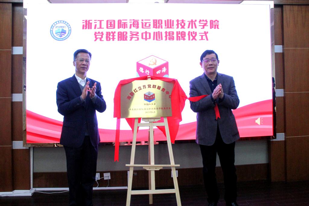 吴中平和胡国光共同为学校“海韵红立方”党群服务中心揭牌。该中心主要面向本校师生、来校学习海员和周边市民等服务,以学校“一站式”学生综合事务管理服务中心为基础,着力构建“1+2+5+N”党群服务矩阵,为师生提供生活、工作等各类服务咨询和场地支持,致力于成为学校党建工作的阵地、教育培训的基地、组织活动的中心和服务群众的窗口。