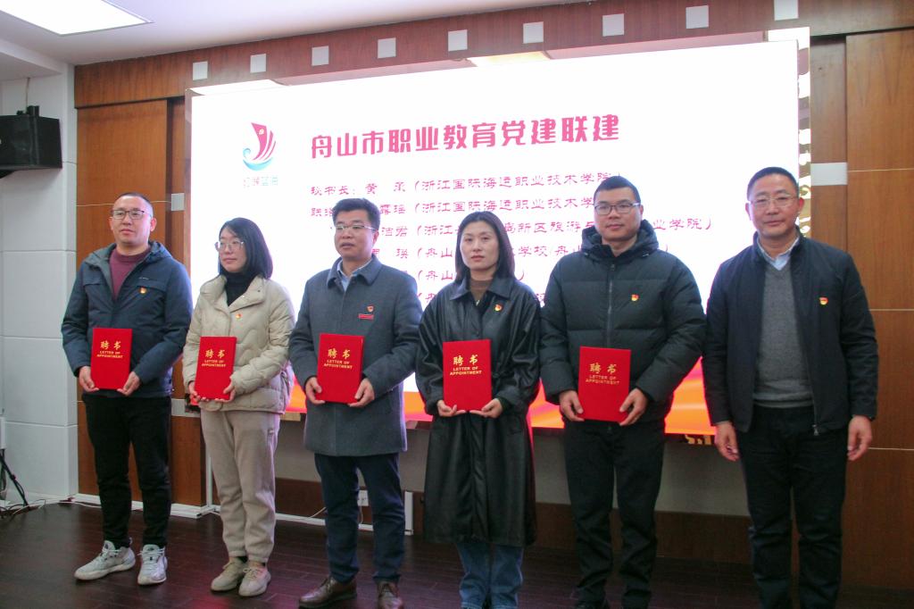 杨永明为党建联建秘书长和联络员颁发聘书。为确保舟山市职业教育党建联建工作顺利开展,按照章程规定,党建联建设秘书处作为日常办事机构,秘书处设在我校党委组织部,由党委委员、组织部部长、人事处处长黄承担任秘书长;舟山各市属职业院校相关部门负责人担任联络员。