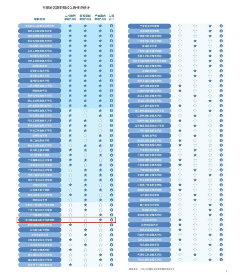 获第六届中国海员技能大比武团体总分第3名;2023年全国职业院校技能大赛获奖1项;浙江省职业院校技能大赛累计获奖32项;第八届国际“互联网+”大学生创新创业大赛国赛获奖1项,省赛获奖1项;2023年浙江省第十八届“挑战杯”大学生课外学术科技作品竞赛获奖5项;省级以上其他各类大赛奖项86项,立项省级“新苗计划”7项,创历史新高。开展学生志愿服务2133多次,近2.5万人次参与志愿服务,服务时长达3万小时。2023届毕业生就业率超98%,留舟率33.52%,留舟率创近年来新高。
