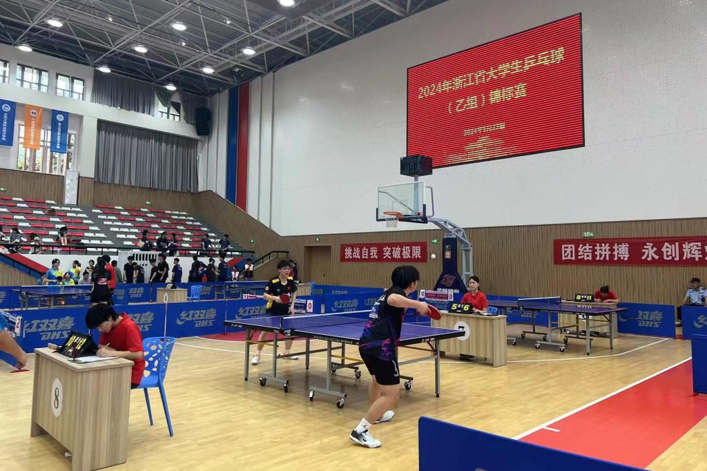 5月22日-26日,由浙江省教育厅、浙江省体育局主办的2024年浙江省大学生乒乓球(乙组)锦标赛在浙江纺织服装职业技术学院举行,共有来自全省29所高职院校286名运动员参加,我校有5位同学参加本次比赛。