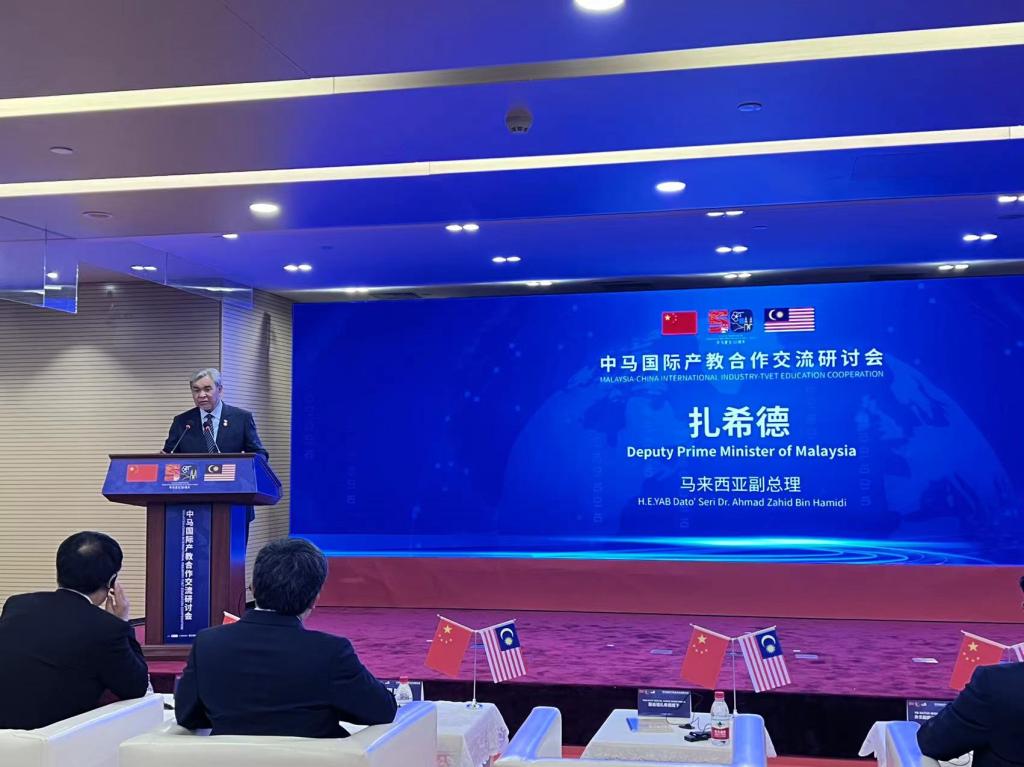 会上,马来西亚副总理扎希德表示,马来西亚高度重视与中国开展职业教育合作,自2023年11月与中国副主席韩正会谈并宣布成立中马产教国际合作中心(MCI)以来,各项工作取得了可喜的成果,近千名马来西亚青年赴华接受技能培训,到2024年底,马来西亚政府将资助2000名马来西亚技能人才前往中国接受就业前培训,感谢支持本项目的中国职业院校。