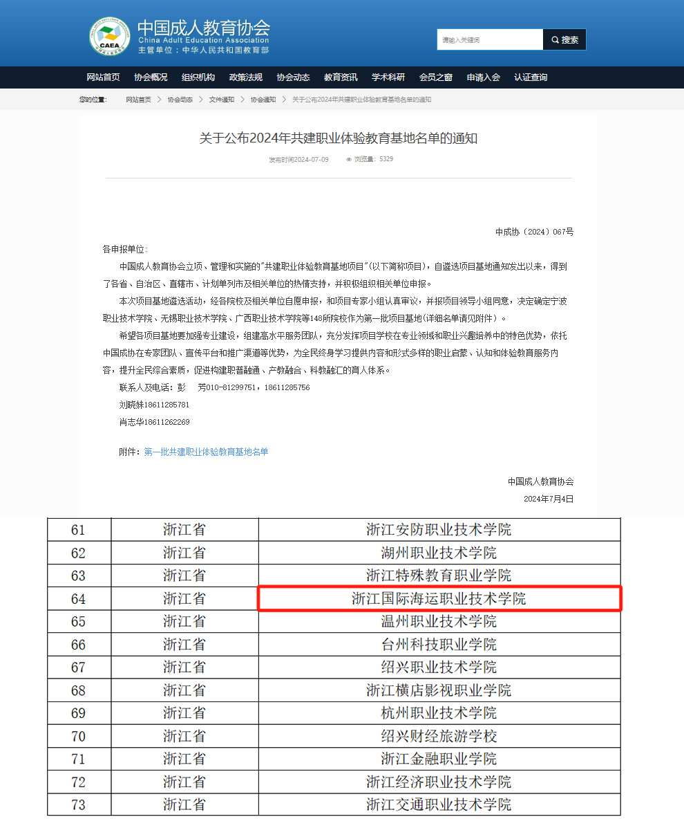 近日,中国成人教育协会发布《关于公布2024年共建职业体验教育基地名单的通知》,公布了2024年第一批共建职业体验教育基地名单,我校成功入选第一批职业体验教育基地单位。