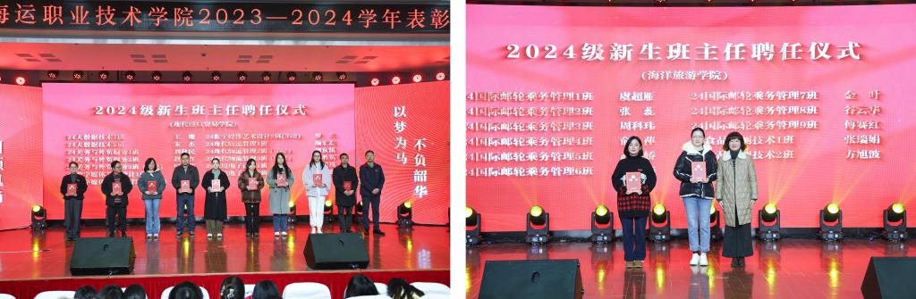 大会对国家奖学金、国家励志奖学金、省政府奖学金、董氏、梁敏行奖学金、东海教育基金会奖学金、浙江东海奖学金、东方海外航运培训奖学金、优秀学业奖学金,先进班级、文明寝室、五好学生、优秀学生干部、工作积极分子、学生竞赛获奖等14项个人及集体奖励进行了表彰,与会领导为获奖个人和集体代表颁奖。随后,举行了24级新生班班主任聘任仪式。