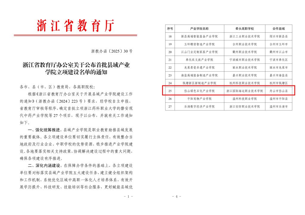 深化产教融合,赋能区域经济高质量发展——岱山绿色石化产业学院成功获省级立项建设
