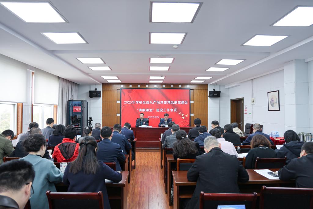 3月28日,学校在行政楼401会议室召开2025年全面从严治党暨党风廉政建设、“清廉海运”建设工作会议。校党委副书记、校长吴中平主持会议,校党委书记苏为泽作2025年学校全面从严治党暨党风廉政建设、“清廉海运”建设工作报告。学校领导班子、学校纪委委员、各部门(单位)负责人和各党总支(直属党支部)纪检委员参加会议。