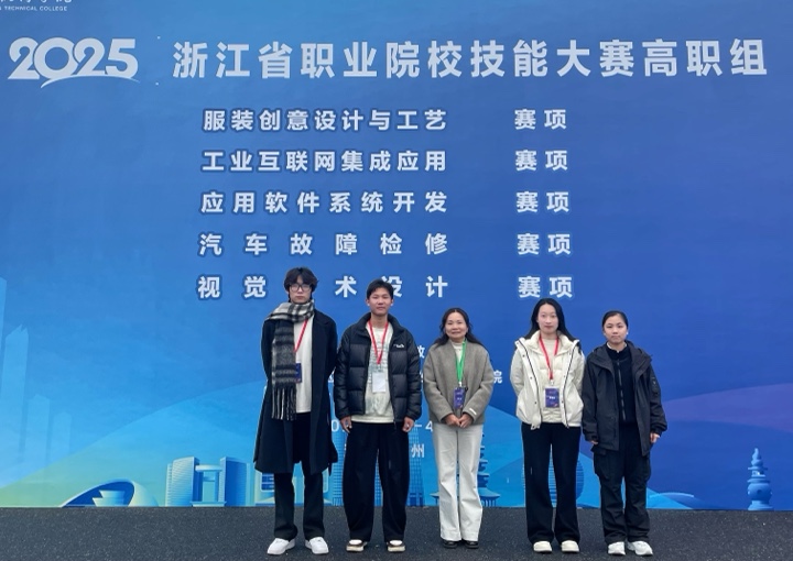 3月28日-30日,2025年浙江省职业院校技能大赛高职组“视觉艺术设计”赛项在杭州职业技术学院圆满落幕。经过激烈的角逐,由现代港口贸易学院数字媒体设计专业教师谢爱英指导,涂青松、赵芷瑶、卢嘉怡、叶姿汝四位同学组成的团队喜获铜奖。