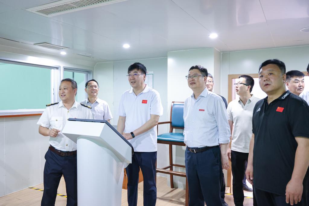 赵福君副主席一行依次参观了航海操纵模拟器、国家级航运虚拟仿真实训中心、轮机模拟器、船舶知识馆等教学科研场所,并现场体验由我校科研团队自主研发的虚拟仿真教学系统。苏为泽书记系统汇报了办学成果,着重阐述了“新双高”建设框架下创新人才培养模式的实践探索,以及在深化产教融合、推进教育数字化转型方面取得的突破性进展,凸显了学校在职业教育改革中的示范引领作用。