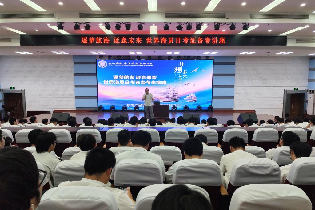 当天,学校还举办了“‘蓝海红帆 同心共航’对话航海人之船长面对面”讲座。华洋海事中心有限公司总船长吴佳明与同学们面对面深入交流,饱含深情且干货满满的演讲带给同学们许多共鸣,并对未来的航海生活心生向往。