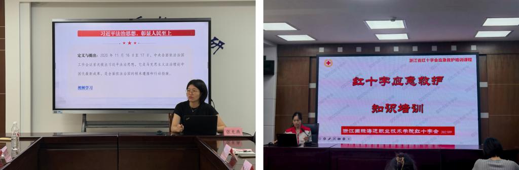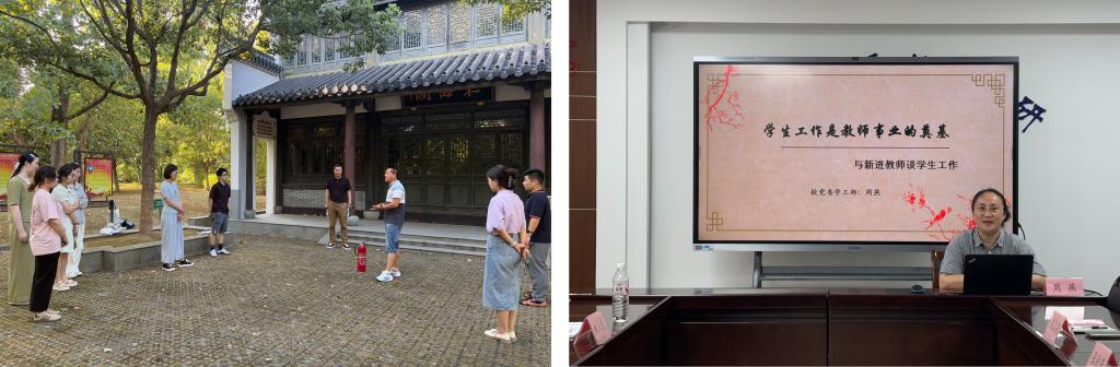 随后,各职能部门负责人依次开展专题授课:教师工作部部长张海波围绕“师德师风建设”与“绿色校园创建”进行讲解,强化新教职工的职业伦理意识与生态育人理念。质管办主任韩开封宣贯质量管理体系,帮助大家掌握教学管理的标准与流程。人事处副处长章靖详细解读人事政策,明晰教师职业成长路径。教务处副处长杨飞聚焦“课堂教学规范”与“教学基本技能”,指导提升教学设计能力。纪委办主任熊孜开展廉政教育,筑牢廉洁从教思想防线。科研处处长何琪讲解科研项目申报与经费管理要点。安保部部长陈增跃就教职工安全意识培养、电信诈骗防范及消防设备使用等进行宣讲。学工部副部长周燕解读学生管理规范。办公室副主任张龙燕围绕“法治校园”建设明确风险防范要点。后勤产业处校医金曙敏开展应急救护培训。宣传部副部长周勤介绍校园文化,加深新教职工的文化认同感。