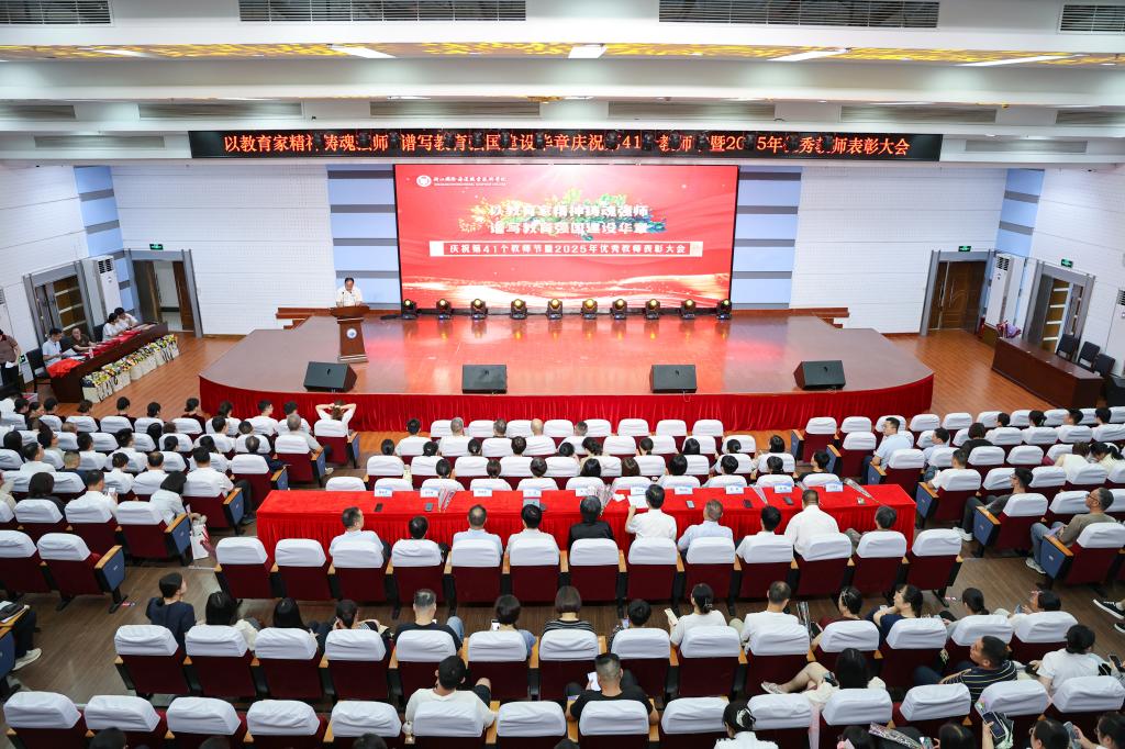 9月10日下午,学校庆祝第41个教师节暨优秀教师表彰大会在图书馆四楼报告厅举行。今年教师节主题为 “以教育家精神铸魂强师,谱写教育强国建设华章”。校党委副书记、校长吴中平出席会议并讲话,党委副书记孔志光主持大会。校领导、全体中层干部、退休教职工代表、受表彰教师代表及全体教职工参会。