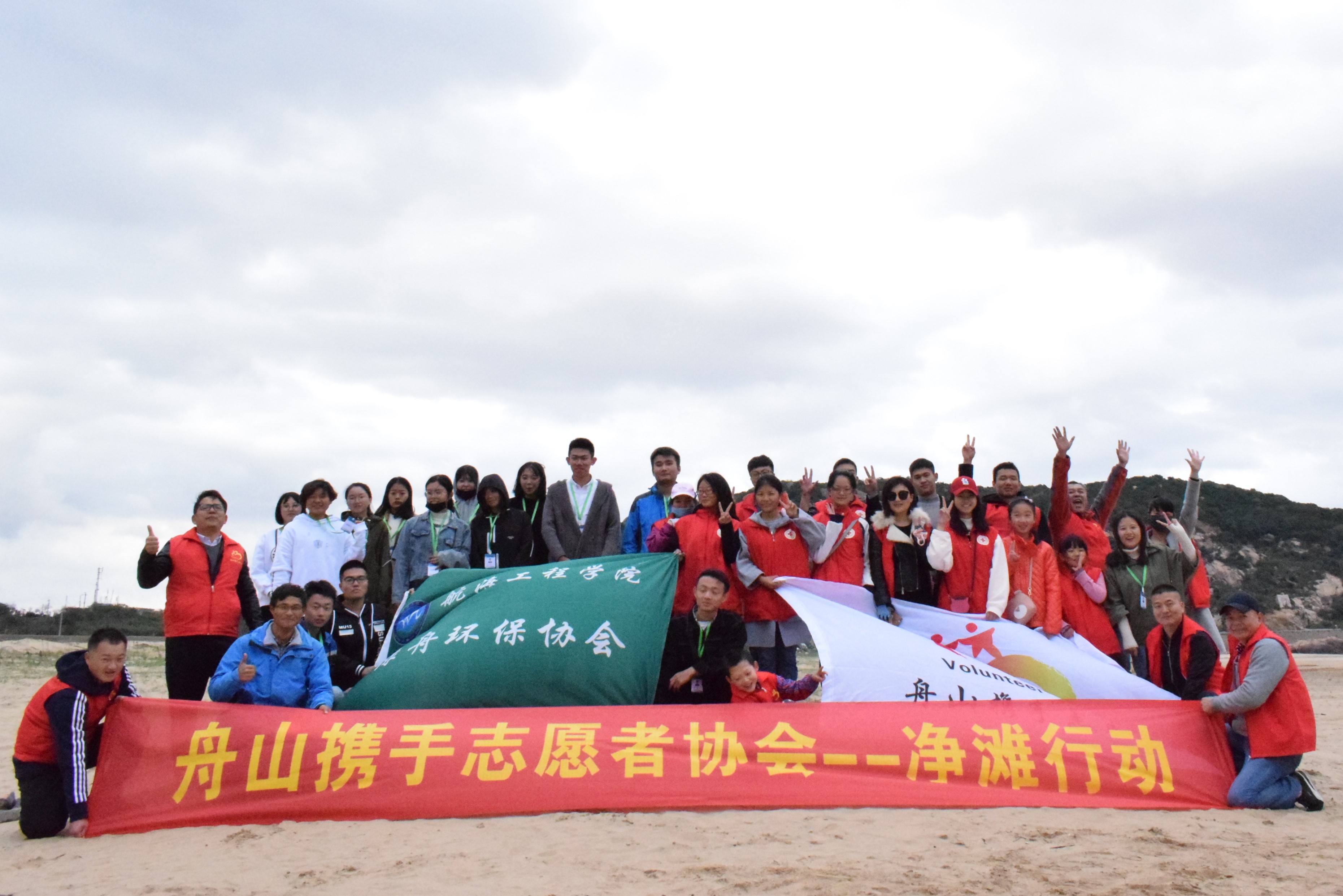 11月19日下午,航海工程学院10名志愿者联手舟山携手志愿者协会在朱家尖月岙沙滩一起开展了一场公益净滩活动。