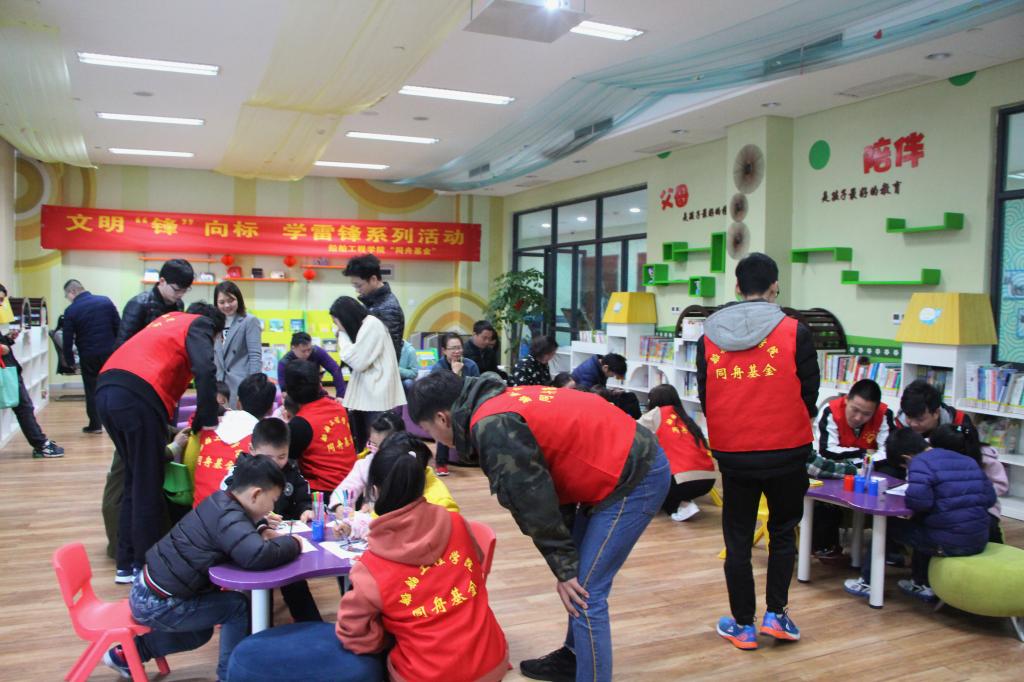 少年儿童是新区未来的希望,为了能让他们理解和传承雷锋精神,“同舟基金”志愿者们利用每个周末,来到舟山市图书馆,除了完成常规的日常服务和 “小实验 大智慧”科普讲堂活动以外,还另外开辟了“文明‘锋’向标”雷锋月特别活动。在3月的每个周末下午,志愿者们会在儿童阅览室进行宣传,邀请当天来到图书馆的小朋友们加入活动,活动包括讲述雷锋生前的小故事、播放学雷锋主题动画片、绘出心中的雷锋等,让孩子们通过生动的事例和亲切的互动,一起理解雷锋精神。
