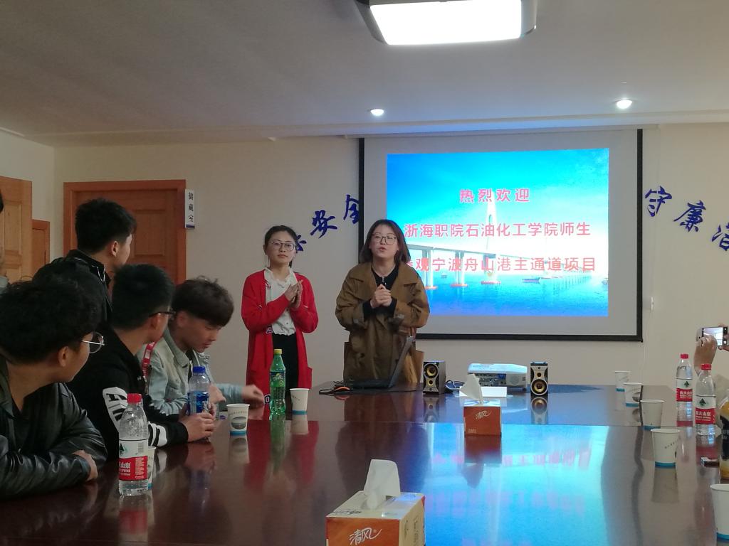 在岱西镇团委书记陶萌娜陪同下,宁波舟山港主通道项目岱山县征迁指挥部负责人利用短片为大家介绍了鱼山项目、舟岱大桥、鱼山大桥等3个项目的建设情况,并带领全体师生参观了大桥施工现场。