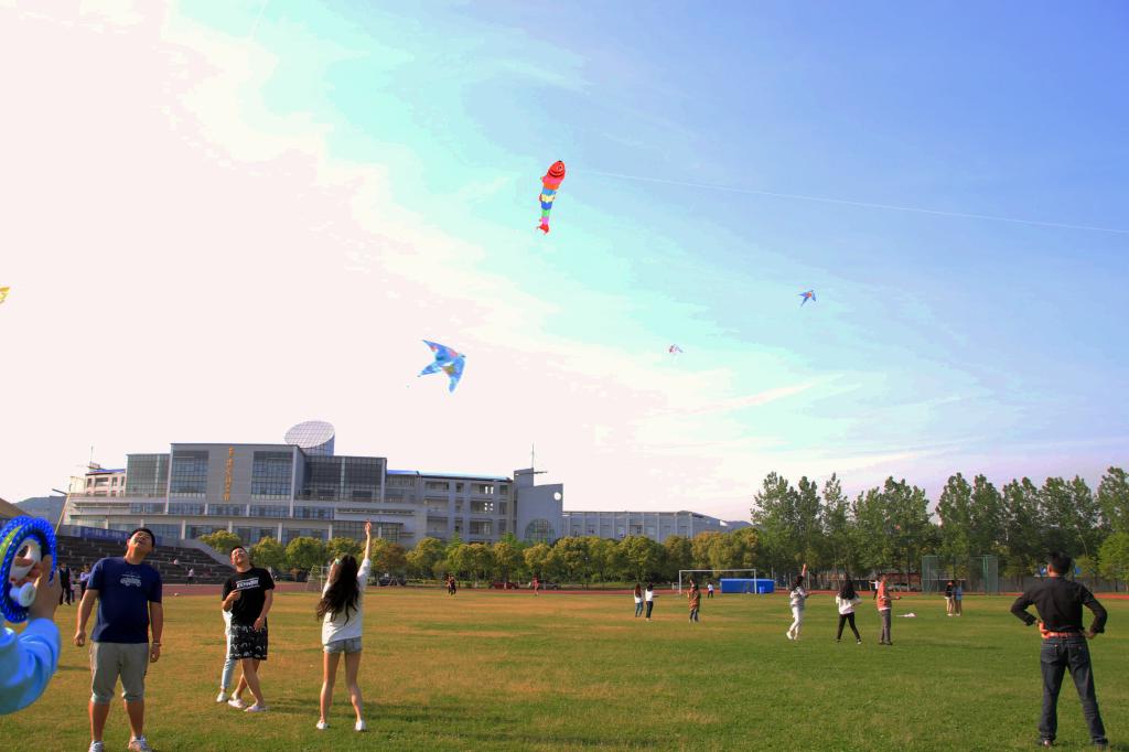 随后,“放飞青春”风筝放飞大赛在同学们的期待中拉开帷幕。比赛正式开始前,参赛的老师和同学们就兴奋不已,拿着风筝提前在操场进行试飞。随着比赛哨子的吹响,选手们拉着各式各样的风筝开始随风奔跑。小猪佩奇、金鱼、雄鹰等五颜六色的风筝在同学们的欢呼声中“噌”地飞上了天。这些风筝有些是同学们自制的,有些是学院团委统一采购的成品。在一片蔚蓝色的天空下,在宽阔的广场上,在清凉的春风中,同学们奔跑着,欢呼着,尽情地放飞着风筝,他们的梦想随着风筝在天空翱翔。老师们也仿佛回到了童年,尽情享受工作之余的童趣。整个校园洋溢着浓浓春意,充满了和谐之美,大家沉浸在一片欢乐的海洋里。