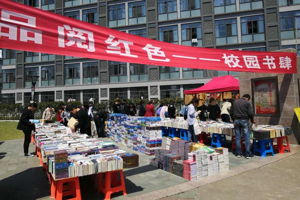 4月1日中午,图书馆(信息中心)联系图书供应商在学生食堂商贸区联合举办图书展销活动“品阅红色—校园书肆”。此图书展销活动是图书馆第十四届“书香海韵——读者服务月”系列活动之一。