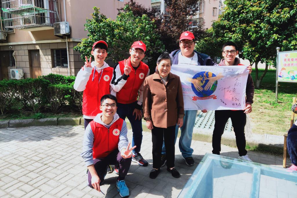 4月22日是世界地球日,为保护世界环境而设。为了迎接世界地球日的到来,唤起大家爱护地球、保护环境的拳拳之心,船舶工程学院红十字分会的“青春热血共创文明城市,暖暖温情守护新区老人”志愿服务队在4月21日组织开展了“创建文明城市,守护蓝色地球”主题宣传活动。志愿者们合力设计绘制了主题宣传旗,分组步行来到服务的社区,面向空巢老人和其他市民宣传环境保护小知识,呼吁大家低碳出行、节约各种资源和能源,并邀请市民在宣传旗上签名合影。