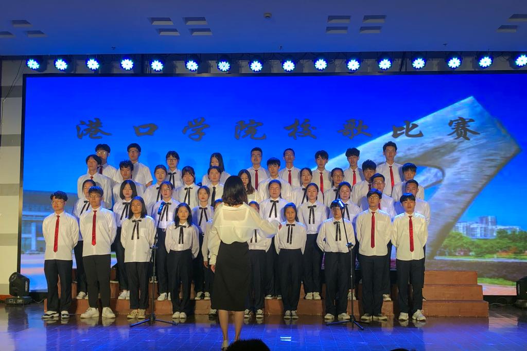 当天晚上,比赛在港口管理学院合唱队带来的校歌《大海,我的未来》和《我爱你,中国》中拉开帷幕。同学们饱满的精神状态、整齐漂亮的服装和构思新颖的队列设计,赢得了在场观众的阵阵掌声。随后,12个班级代表队根据抽签顺序依次上台演唱校歌。他们以高昂的热情、嘹亮的嗓音,唱出了对大海、对未来的热爱。经过激烈角逐,2018级物流管理2班获得本次比赛第一名。(图文/余娜娜)