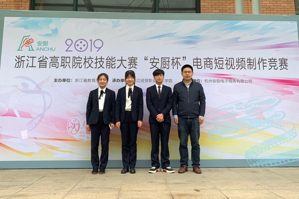 在近日举行的2019年浙江省高职院校技能大赛“电商短视频制作”竞赛中,由港口管理学院董增辉、王威璇和蒋欢乐三位同学组成、由韩君和靳荣利老师指导的参赛队荣获团体一等奖。