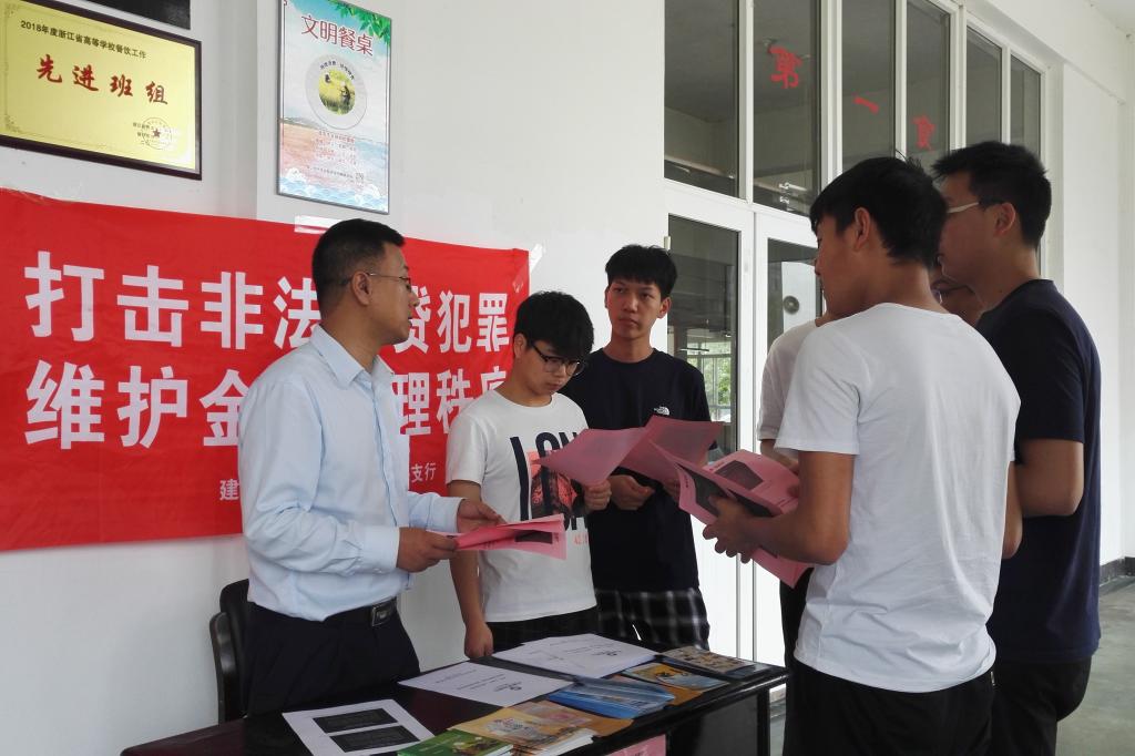 为积极教育引导在校学生增强金融风险防范意识和自身保护意识,计财处牵头联系中国建设银行定海支行工作人员于5月29日走进学校,为学生们宣传金融安全知识。