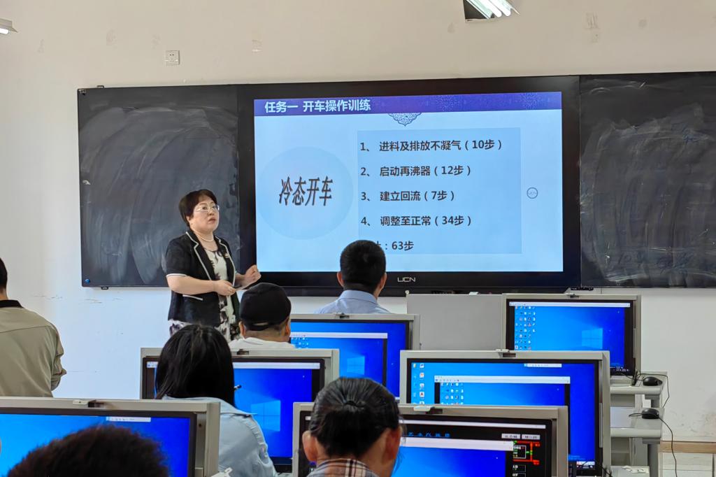 王焕梅教授以《化工总控工中级工取证》课程为例,分析了中高职学生的学习习惯,并从教学方法改进、课堂把控等方面,为在场老师进行教学指导。