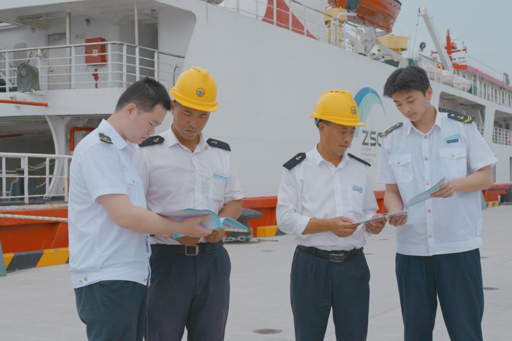 在航运企业里,师生们会同企业负责人一起交流探讨分享在船舶安全管理方面的经验以及在船员工伤、事故预防方面的良好做法。在港口码头上,老师带领同学们一起向码头工人宣讲海上系解缆作业以及货物装卸作业中存在的安全风险以及防范措施,并解读了一些事故案例。随后,师生们登上码头停靠的船舶,在船上与船长和船员一起交流船上关键性操作中存在的风险、应对措施以及海上应急方面的相关知识和技能,同时还就海洋环境保护方面的话题进行了探讨交流。
