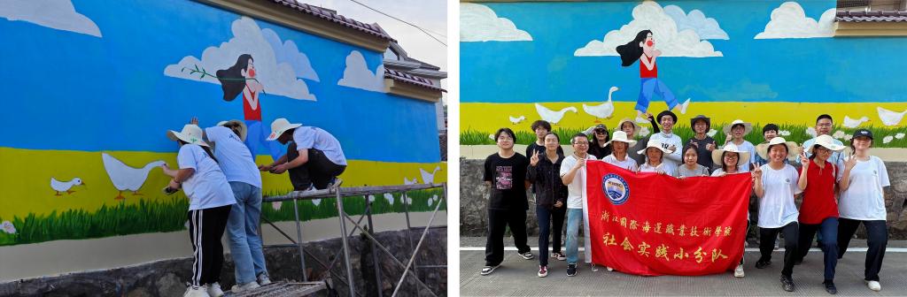 6月29日-7月5日,由郑堃、韩君老师带领的一行15人来到白泉皋泄村开展了公益墙绘实践活动。实践团深入乡村,选取了一面面朴素的墙壁作为画布,用斑斓的色彩和生动的图案,将乡村面貌焕然一新。从海洋文化到港口贸易,从渔舟唱晚到乡村振兴,一幅幅墙绘不仅美化了乡村环境,更成为传播正能量、弘扬主旋律的鲜活载体。更重要的是,通过这一过程,实践团成员与村民们建立了深厚的情谊,用实际行动传递了爱心与温暖。在墙绘创作中,他们巧妙融入乡村当地元素,展现了当地乡村的美好景象。他们用画笔描绘梦想,用实践书写青春,展现了新时代学子的风采。