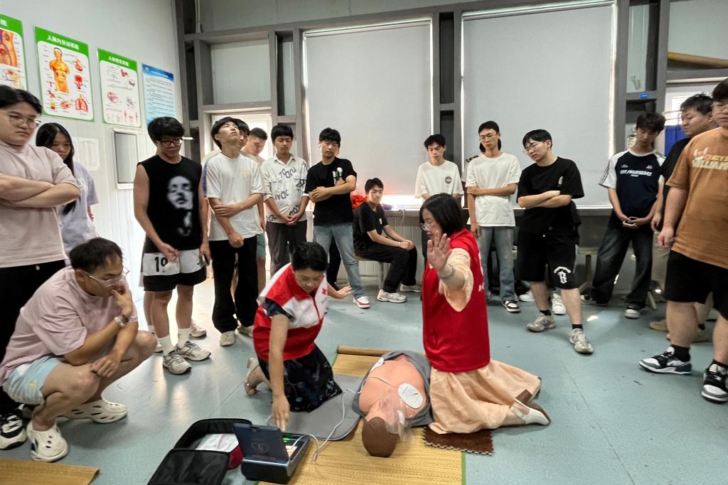 军训期间,多部门联合为2500余名新生开展急救教育普及活动,校红十会秘书长金曙敏开展了红十字生命教育讲座;救护师资孙磊、翁来勇、孙丹晔等三位老师,分别开展了心肺复苏+AED操作、海姆立克急救法等内容丰富的应急救护普及培训。
