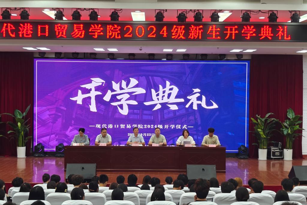 9月23日下午,现代港口贸易学院2024级新生开学典礼在图书馆四楼报告厅举行,2024级全体新生和学院新生班辅导员、班主任参加了此次典礼。