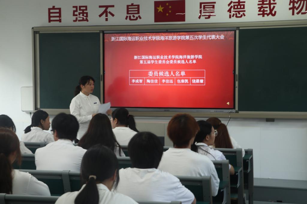 9月20日下午,海洋旅游学院在教学楼3205教室正式召开第五次学生代表大会。