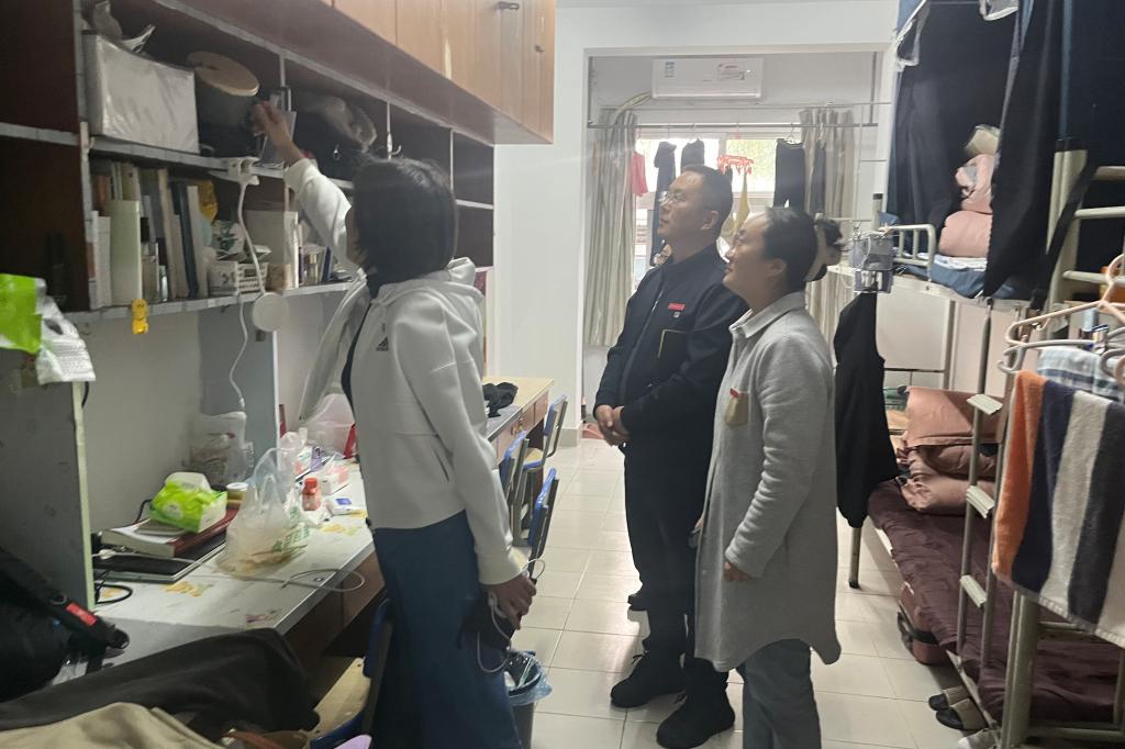 检查过程中,孔志光副书记认真听取了学生社区内应急安全、学生管理、消防安全、管制刀具排查等方面的工作汇报,对学生在社区生活情况给予重点关注,对发现的安全隐患提出整改意见,要求各职能部门以“为学生办实事”为出发点和落脚点,提高管理服务水平,提升学生住宿舒适度和满意度。