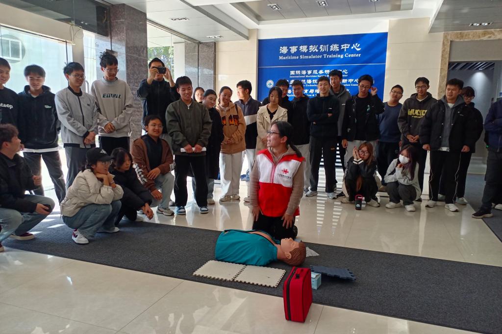 12月1日上午,经多方协调,精心筹划,指导老师带头,后勤产业处联合安全保卫部组织全体平安海运联盟队员参加第十四期CPR与AED急救培训。