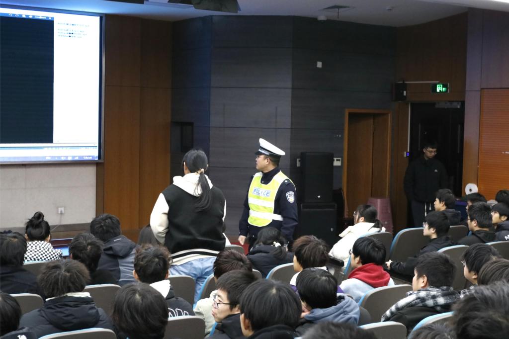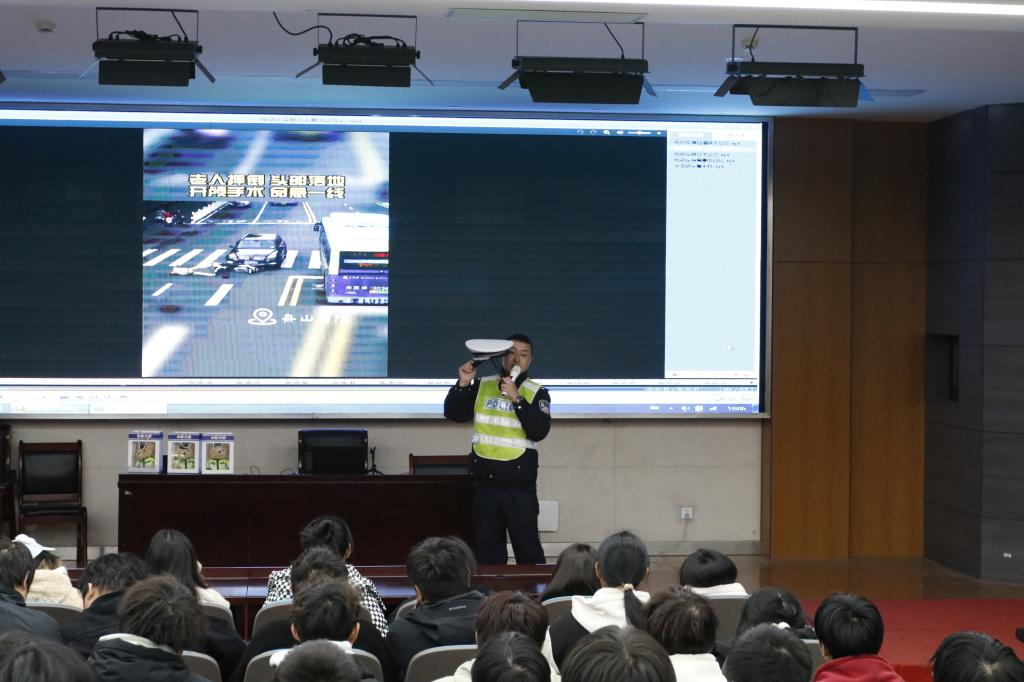 讲座邀请了交通警察大队张警官担任主讲。张警官结合近年来我国交通事故典型案例,分析了交通事故发生的原因,以及如何有效预防交通事故。他详细讲解了驾驶机动车、骑行电动车和步行的注意事项,提醒师生们在出行时要时刻保持警惕,自觉遵守交通法规。他表示,交通安全关系到每个人的生命安全和家庭幸福,希望大家能够将所学知识传递给身边的人,共同营造安全、有序的交通环境。