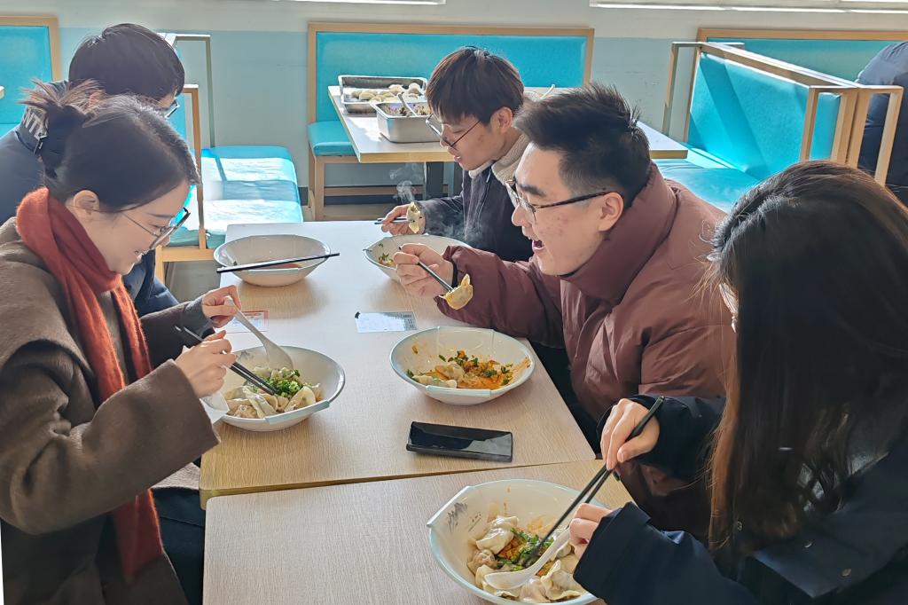 随着一盘盘热气腾腾的饺子出锅,大家围坐一起,品尝着美味,分享着喜悦。这份特别的午餐,不仅满足了味蕾,也让大家感受到了新年的气氛和学院的关怀。