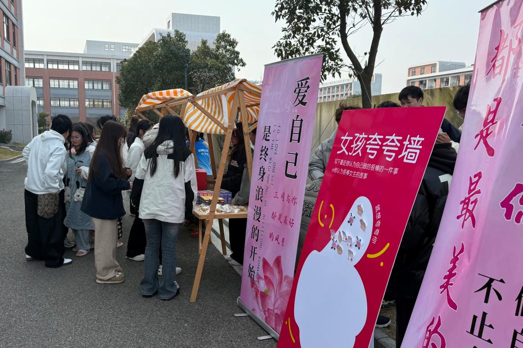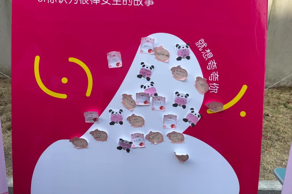 院团委学生会以及平安守护联盟社团成员花费两天时间用扭扭棒精心制作了数百朵精美手工花,女生们纷纷在便签上写下对女生的祝福、自我鼓励以及对未来的期许,随后前往奖品处领取手工花和可爱小礼品。一张张普通便签,承载着女性的爱与善良。