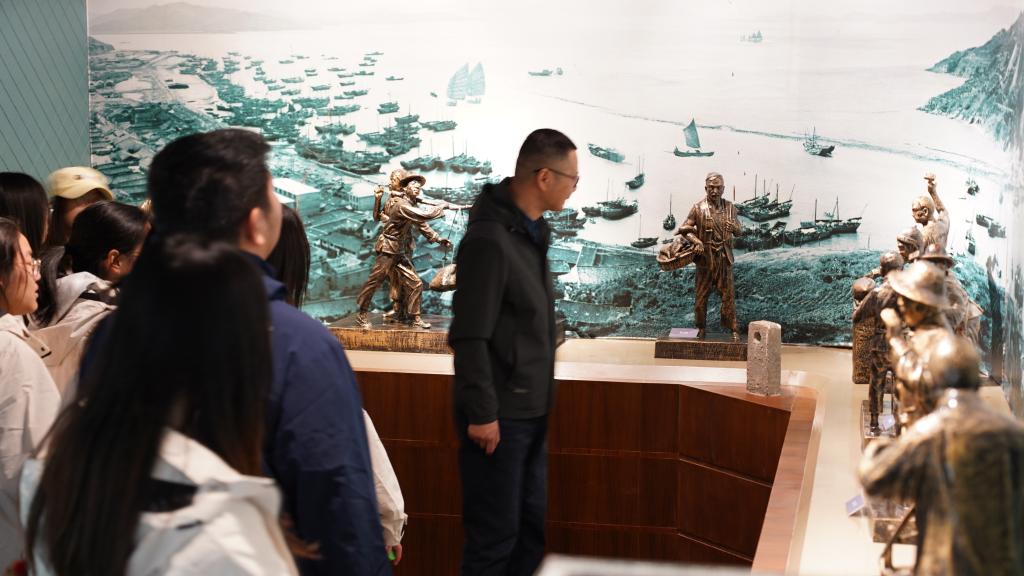 3月23日上午,远洋渔业码头和沈家门渔港博物馆成为实践第三站。在码头旁,孙峰老师介绍了远洋鱿鱼运输船走私的生动案例。随后前往沈家门渔港博物馆,了解渔民生产、生活习俗及渔都沈家门的形成、发展和解放后的大变化。最后社团沿北安路、中大街开展流动宣传,向商户、路人发放宣传册。