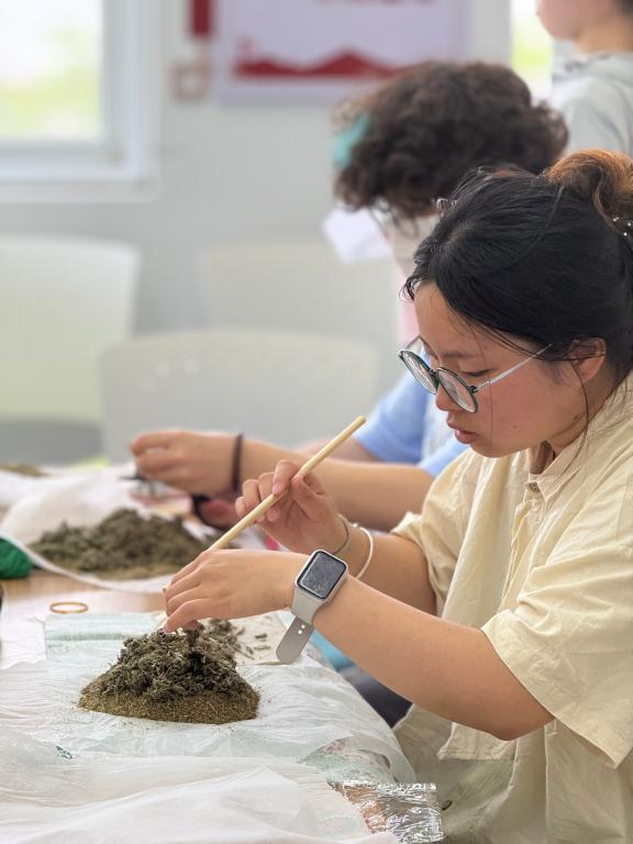 此次活动将非遗艾草锤制作与心理疗愈深度融合,在艾香氛围中,用手工创作传递情感,释放压力,治愈心灵,通过手工疗愈倡导自我关爱,增进学生间交流,营造和谐校园氛围。(图文/孙含笑)