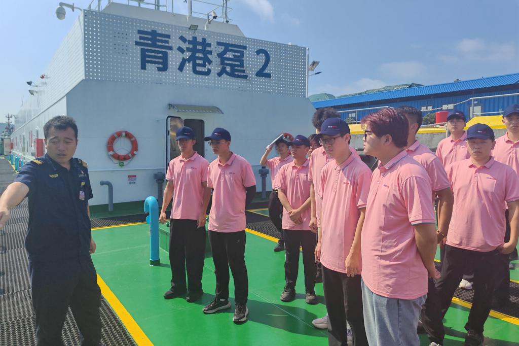 港口作为航运业的核心场景,是产教融合的重要实践载体。8月22日,学子们前往前湾工作船码头与青岛港全自动化集装箱码头参观学习。在全自动化码头,无人集装箱卡车、智能调度系统等前沿技术的展示,让学子们直观感受现代航运业的智能化转型趋势。企业技术骨干全程随行讲解,将港口运营管理知识融入实地教学,实现了“行走的课堂”育人效果。