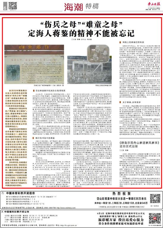 (2018年9月6日《舟山日报》第6版 海潮特稿)