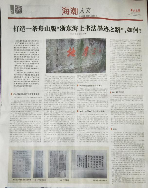 《舟山日报》:打造一条舟山版“浙东海上书法墨迹之路”,如何?