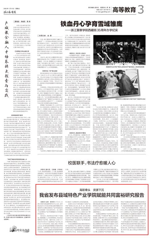 本报讯(记者 舒玲玲)1月6日,由浙江省现代职业教育研究中心主办、金华职业技术大学承办的职业教育赋能共同富裕研讨会暨县域特色产业学院建设经验交流及推广会在金华召开。会上发布了《县域特色产业学院赋能浙江共同富裕研究报告》。