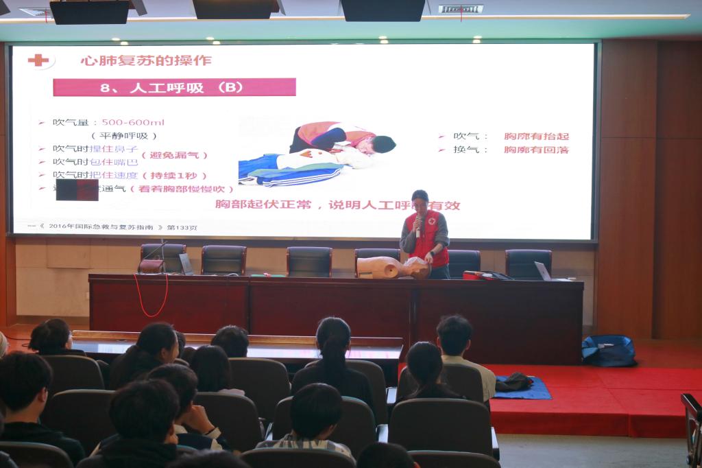 全体志愿者于3月26日接受了培训,对赛事的路线、规模、站点等信息有了清晰认识,培训老师还在仪态礼仪、语言服务、工作纪律等方面提出了具体要求,确保志愿服务的有序开展。医疗志愿者虽然均为学院急救培训中已经获得CPR+AED证书的持证人员,但是也接受了线下实操培训,包括心肺复苏、骨折包扎等,旨在教会志愿者在突发状况发生时的处理方法,保障参赛者安全。
